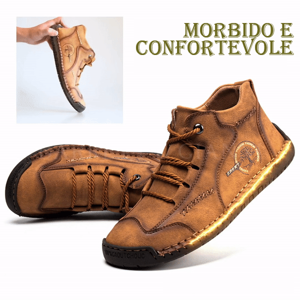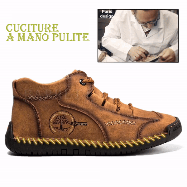 Costurado à mão: O trabalho artesanal garante uma maior durabilidade. A qualidade é evidente nos detalhes que prolongam a vida útil dos sapatos.